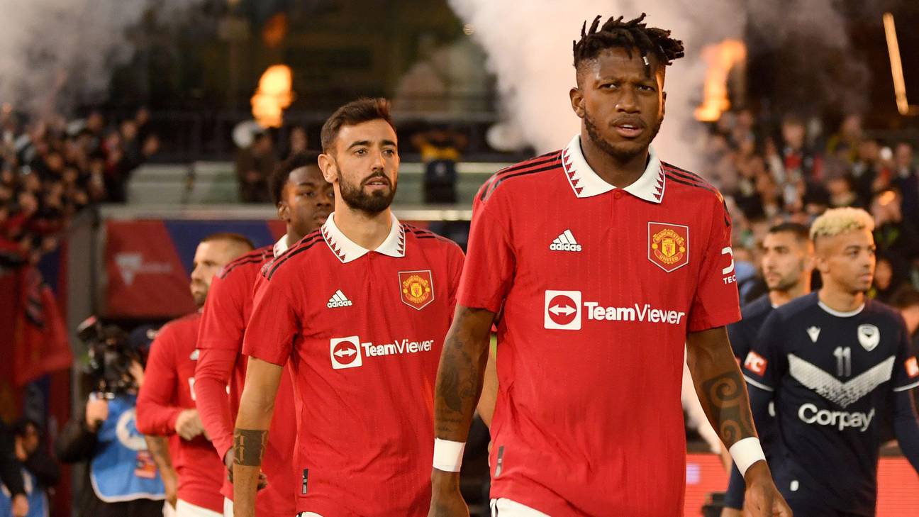 Anthony Elanga, Luke Shaw, Bruno Fernandes, and Fred leave the field before Manchester United defeats Melbourne Victory in preseason. (Image)