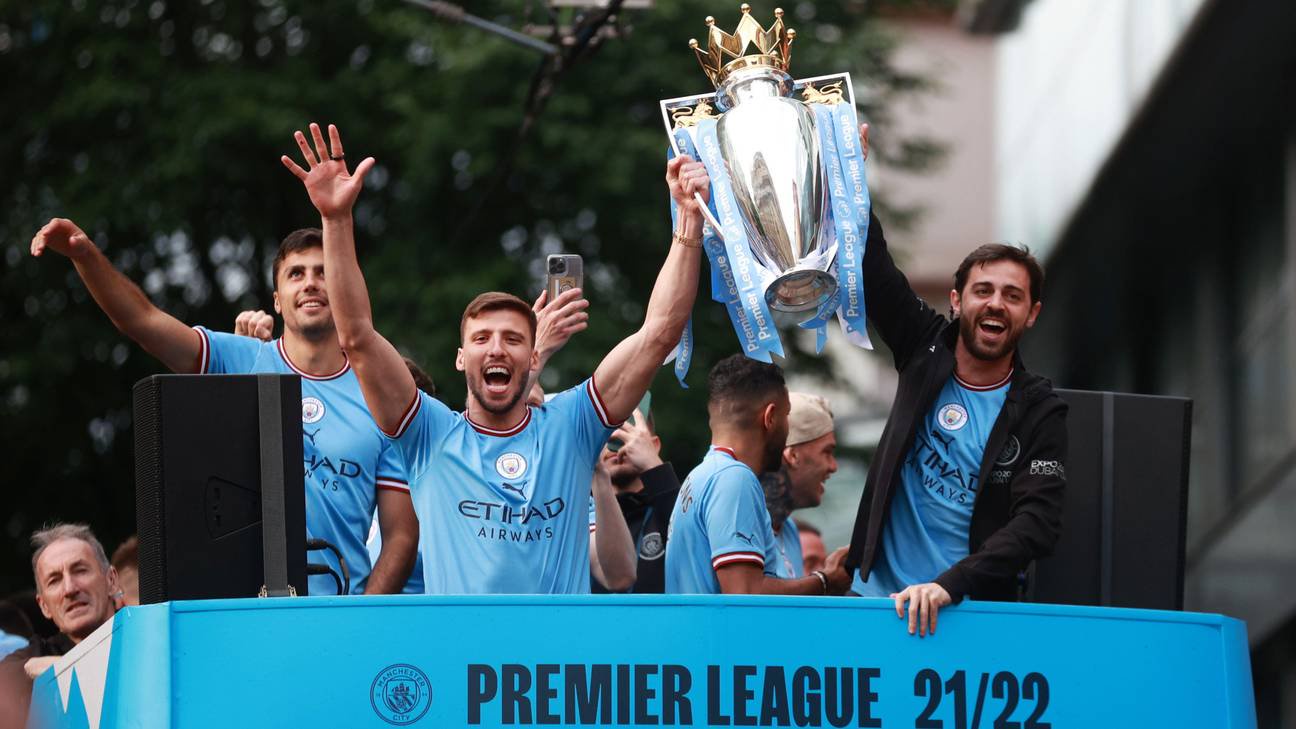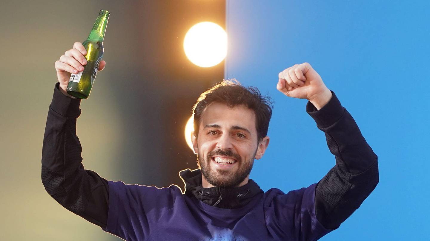 Manchester City's win of the Premier League trophy is celebrated by Bernardo Silva.