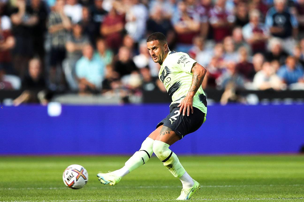 In action for Manchester City is Kyle Walker.